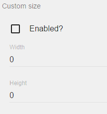 Vous pouvez modifier la taille des objets en activant la taille personnalisée dans le panneau de propriétés, puis entrez les dimensions personnalisées Width (largeur) et Height (hauteur) en pixels :