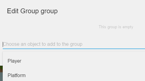 Dans la fenêtre qui s'ouvre pour éditer le groupe, cliquez sur le champ du bas et choisissez un objet (ou écrivez le nom d'un objet) pour l'ajouter au groupe.