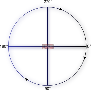 L'angle peut prendre n'importe quelle valeur de 0 à 360 degrés. Rappelez-vous ce diagramme pour voir quelle est l'orientation d'un angle donné :