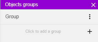 L'éditeur de groupes répertorie tous les groupes de la scène (ainsi que les groupes globaux disponibles dans toutes les scènes du jeu). Pour ajouter un groupe, cliquez sur le bouton Click to add a group (Cliquez pour ajouter un groupe) en bas de la liste :