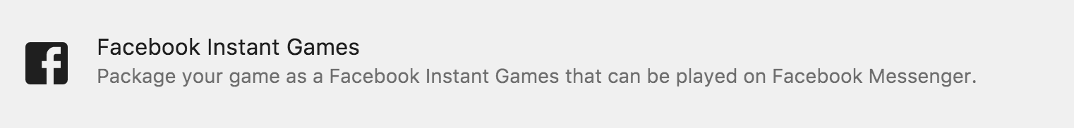 Dans GDevelop, ouvrez la fenêtre d'exportation. Choisissez Facebook Instant Games :