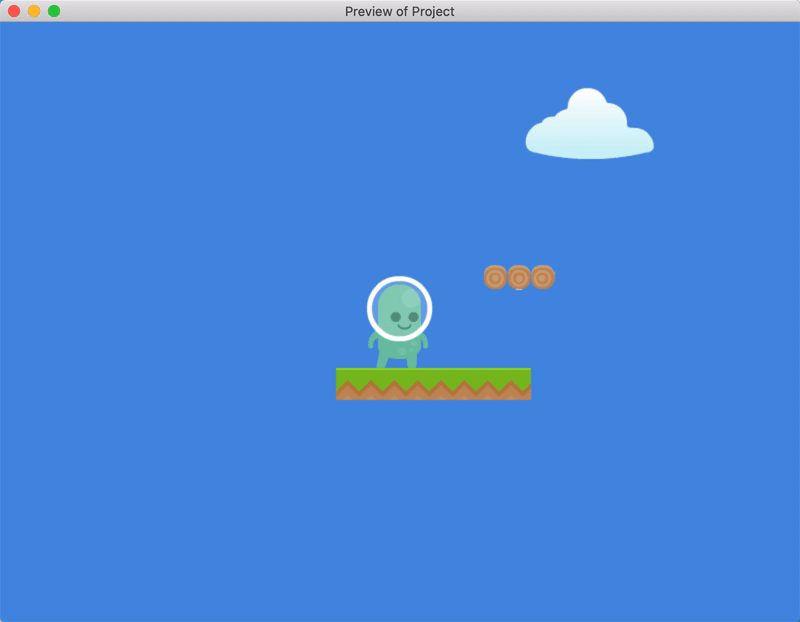 GDevelop also provides the Jumpthru platform behavior. This behavior creates a platform that the player can jump onto from beneath it. This adds more variety to the level.
