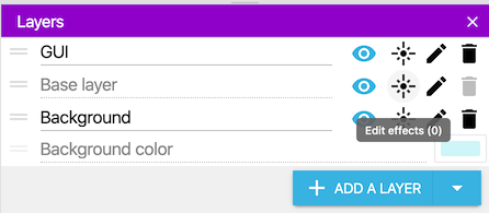 シーンエディター上でレイヤーエディターを開きます。エフェクトをかけたいベースレイヤーまたは別のレイヤーの[エフェクトを編集]ボタンをクリックします。