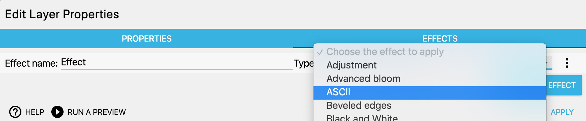 エフェクトの種類を選択します。セレクターをクリックして、リストから選びます。